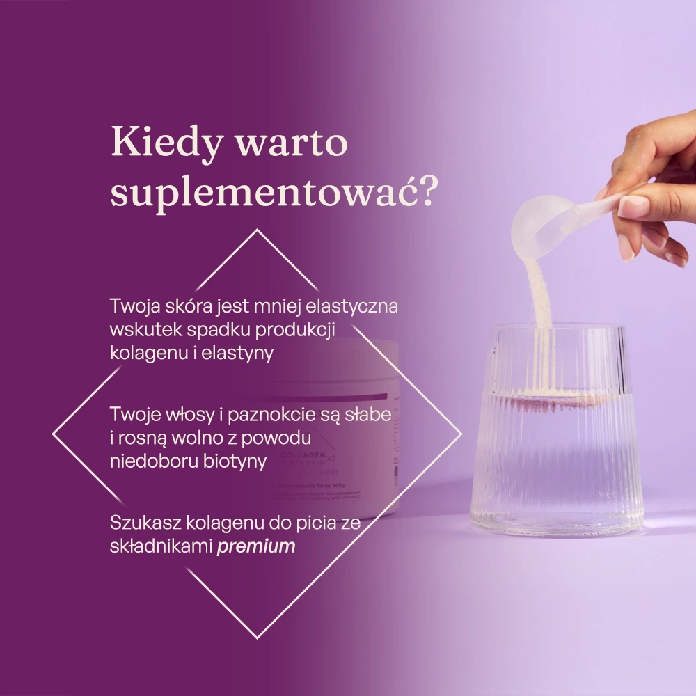✔ Tylko Collagen Your Skin – gdy priorytetem jest regeneracja skóry, wsparcie kolagenu i antyoksydacja. Można stosować ciągle, bez robienia przerw.